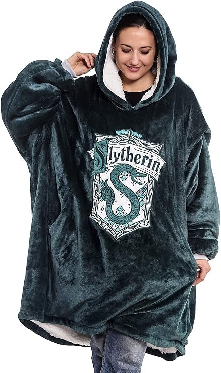 Harry Potter: Unisex Slytherin Oversized Blanket Hoodie - Comfortable Sherpa fleece lining and pockets