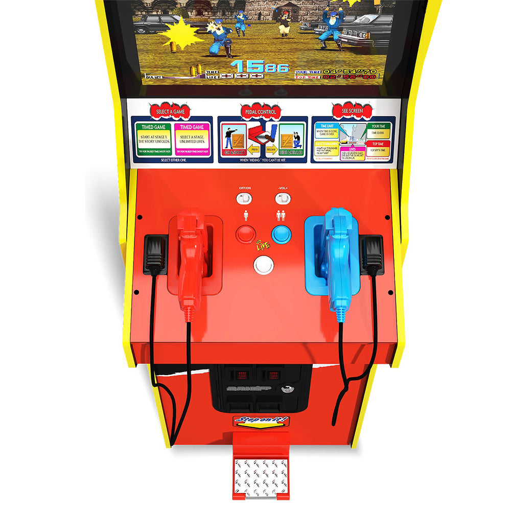 - Two Guns with Mechanical Slide Action: Authentic arcade gunplay that brings the action to life.
